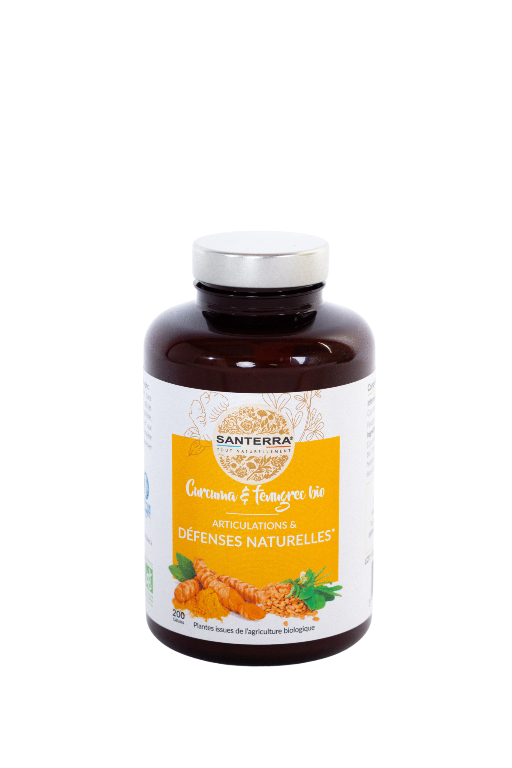 Củ nghệ hữu cơ (Curcuma longa), bột hạt cỏ cà ri hữu cơ** (Trigonella foenum-graecum), tunic: chất tạo gel hydroxypropylmethylcellulose
